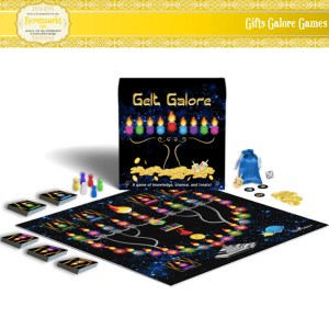 Gelt Galore (Hannukkah board game) and Hanukkah greeting cards.