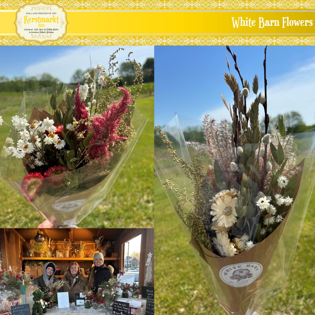Dried flower boquets, wreaths, ornaments, center pieces and holiday garland.
