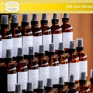 Wooden wick candles, shimmer melts, air & linen mists, match sets and decor.
